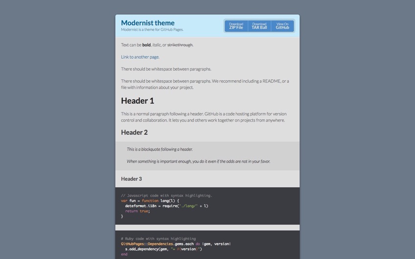 gem "jekyll-theme-modernist"theme: jekyll-theme-modernist
